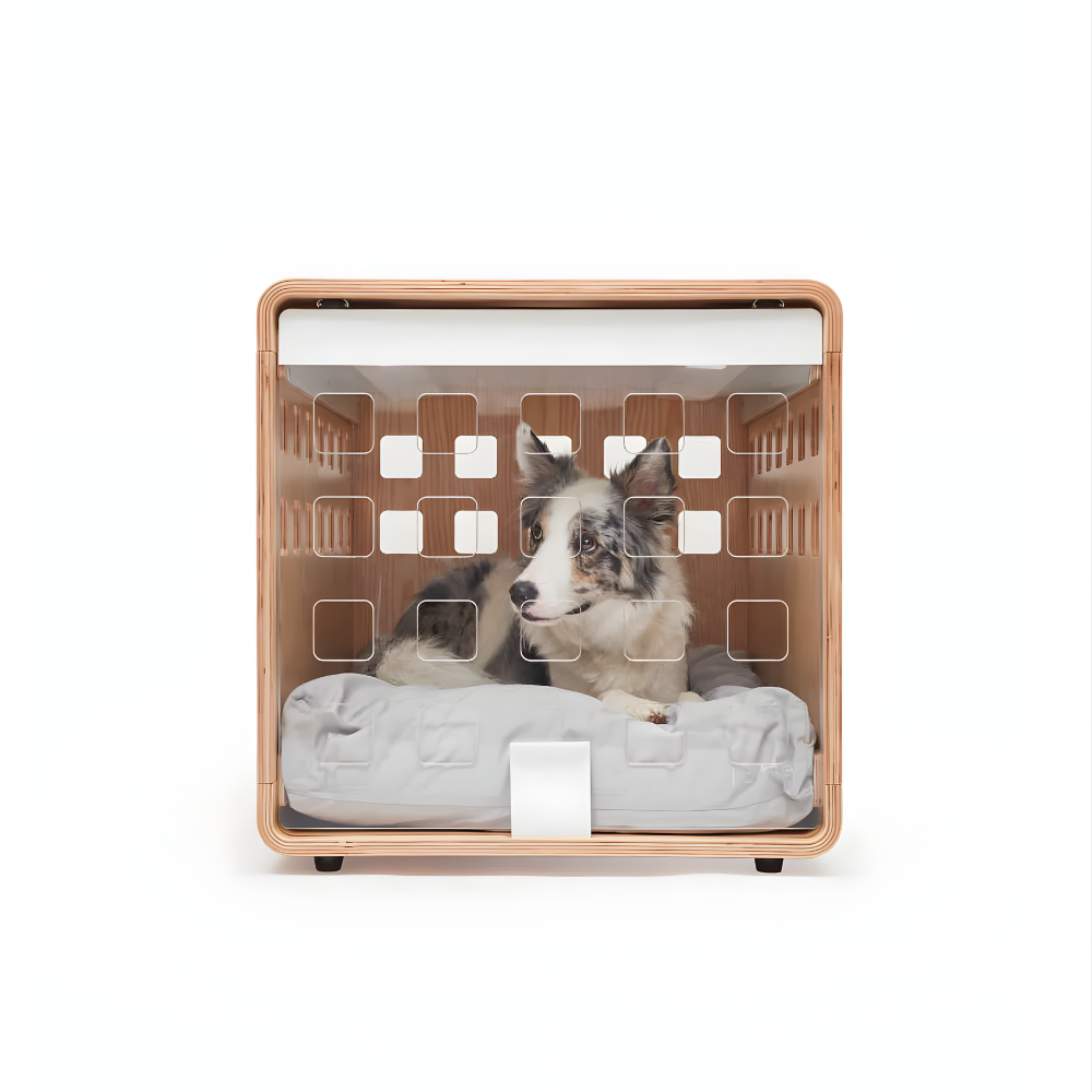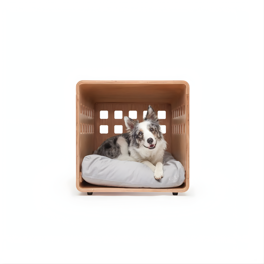 De Crate® biedt je hond een beschutte plek om zich terug te trekken en te ontspannen. Dankzij de doordachte vormgeving en ventilatieopeningen ontstaat een prettige balans tussen frisse lucht en geborgenheid, vergelijkbaar met een natuurlijke rustplek.
