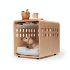 De Crate® Bench is een design hondenbench die is ontworpen voor mensen die geen concessies willen doen aan hun interieur. Deze bench combineert een veilige, rustige plek voor je hond met de uitstraling en functionaliteit van een stijlvolle bijzettafel. Gemaakt van gebogen hout in een warme walnut afwerking, past de Crate® moeiteloos in moderne woonruimtes, zonder het gevoel van een traditionele hondenbench.